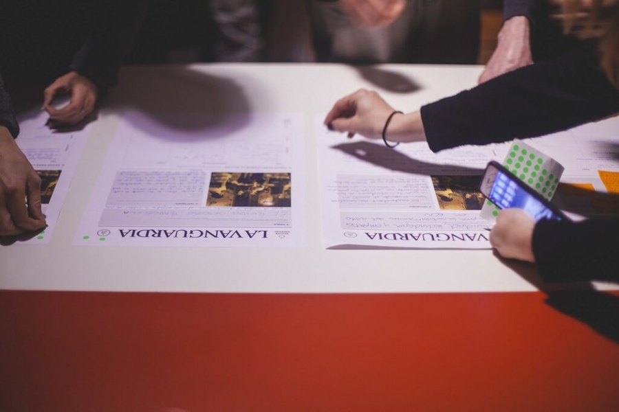 Participants of the Making Sense project in Barcelona use the Future Newspaper Tool to decide on which actions they would like to take. © Making Sense