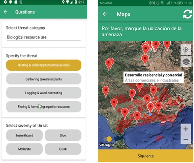 Example from the LandSense projectWorking with partner BirdLife International and the associated monitoring organisations on the ground in Spain and Indonesia, the overarching aim was to collect data on threats to bird habitats in areas of importance to birds and biodiversity. The categories of threats were provided by the International Union of Conservation of Nature, so the challenge was to develop a tool for collecting this information on the ground. A simple-to-use menu of threats was embedded in a mobile app (called Natura Alert) to which additional comments, photographs and videos can be added. To render the threat information even more useful, additional questions were asked regarding the longevity and spatial extent of the threat so that these could be linked to the annual threat assessments that are undertaken by BirdLife for each area of importance to birds and biodiversity. The threat data were then made available via the Natura Alert web application, including contextual information such as the location and the date and time of collection.