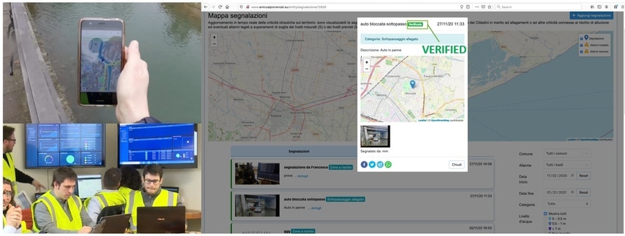 Example from the Citizen Observatory of Water for flood risk management in the Brenta-Bacchiglione catchment (Italy)In the Brenta-Bacchiglione Citizen Observatory, authorities must be able to manage variable quality of information (e.g. crowdsourced observations regarding the water level of a river), in order to have access to an accurate and consistent data set to be taken into account for decision-making purposes. In the data management platform, automatic filters provided for validation operations are also integrated with ‘manual’ control systems to be used if necessary. Information reported, such as the presence of flooded areas, are published on the platform as “verified by the authorities” only if confirmed by a certain number of reports or by a Civil Protection team sent to the specific location.