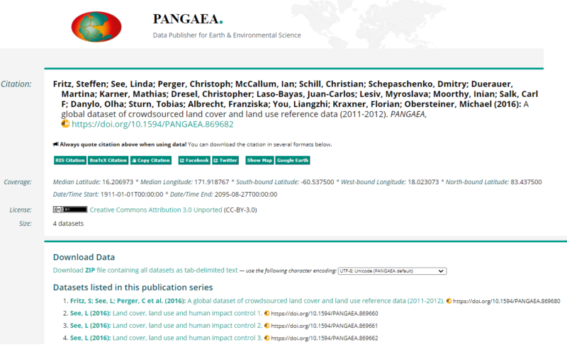 In LandSense, we use the LandSense Engagement Platform to openly share data. We use a distributed system for this. The data from the different citizen science campaigns are hosted with the various project organisations but are accessible on the platform. This also helps to ensure that access to the data can be sustained beyond the lifetime of the project. Landsense data is also uploaded to Zenodo and Pangaea for data access and data preservation purposes. The paper “Global dataset of crowdsources for land cover and land use data” illustrates most of the good practices necessary for data sharing. The license is specified as a Creative Commons 3.0 resource. It uses the CC-BY squema and allows any possible usage, including commercial, the only requirement being the need to acknowledge the data sources. The data is accompanied by some medata representing the spatial-temporal context. To access the data, a series of easy to download ZIP files are provided. These zips contain a text data structure that uses tabular data. This data service does not allow for easy extraction of a subset of the data, but given the amount of data contained in the zips, this should not be necessary.