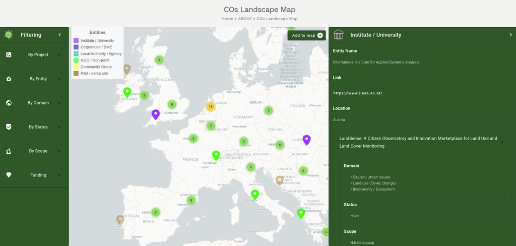 TOOL: The WeObserve Landscape Map of Citizen Observatories presents a visualisation of Citizen Observatories (and related organisations) across Europe.